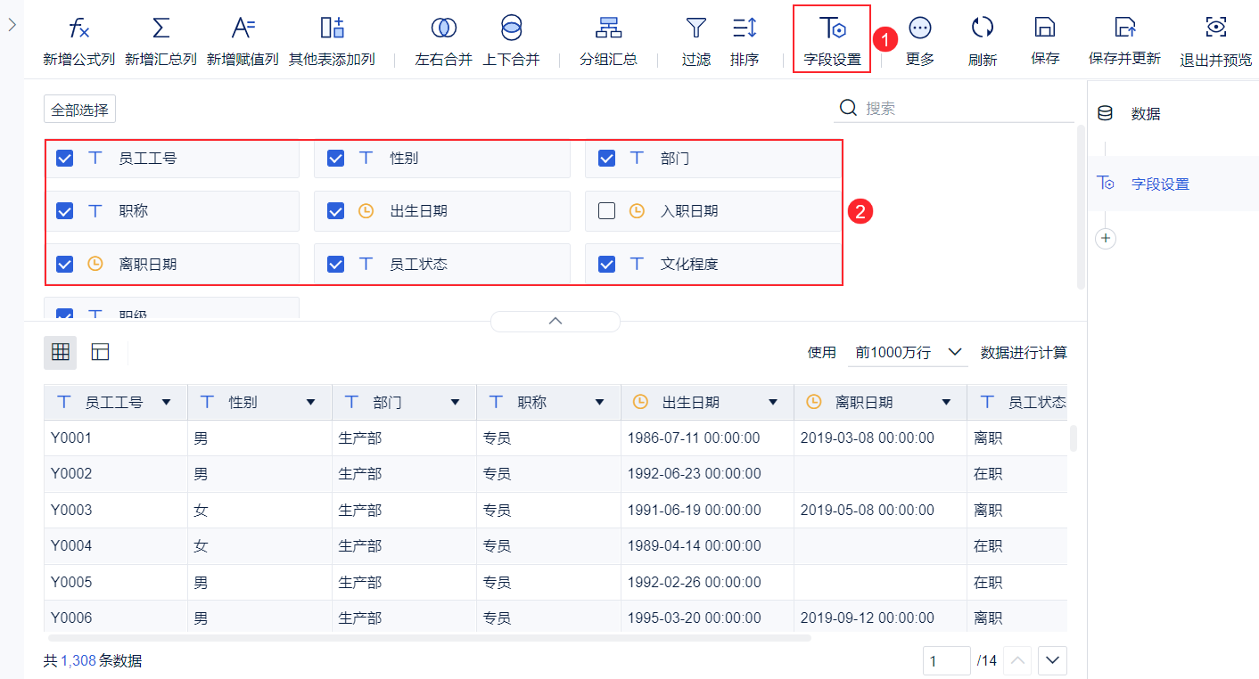 2)点击「字段设置」,取消勾选「离职日期」,如下图所示: