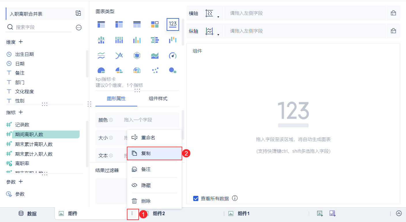 1)为了不要重复操作 2.2 节,我们对只构建了分析字段的组件进行复制,如下图所示: