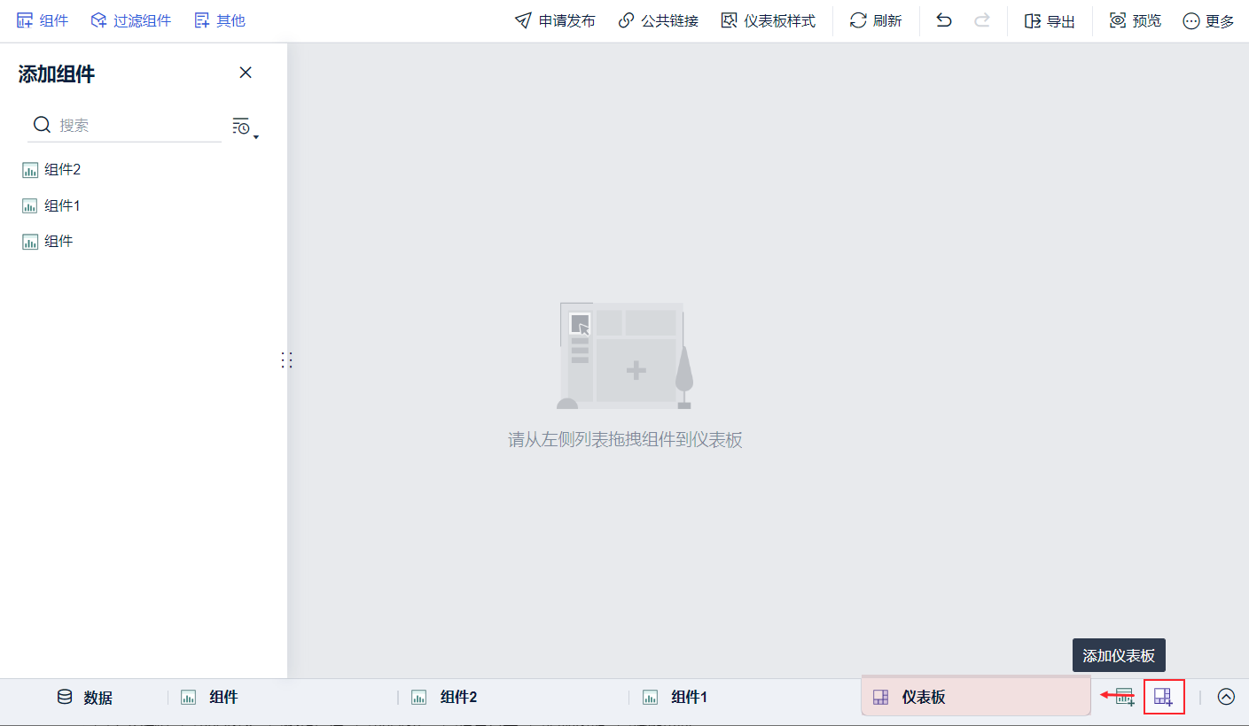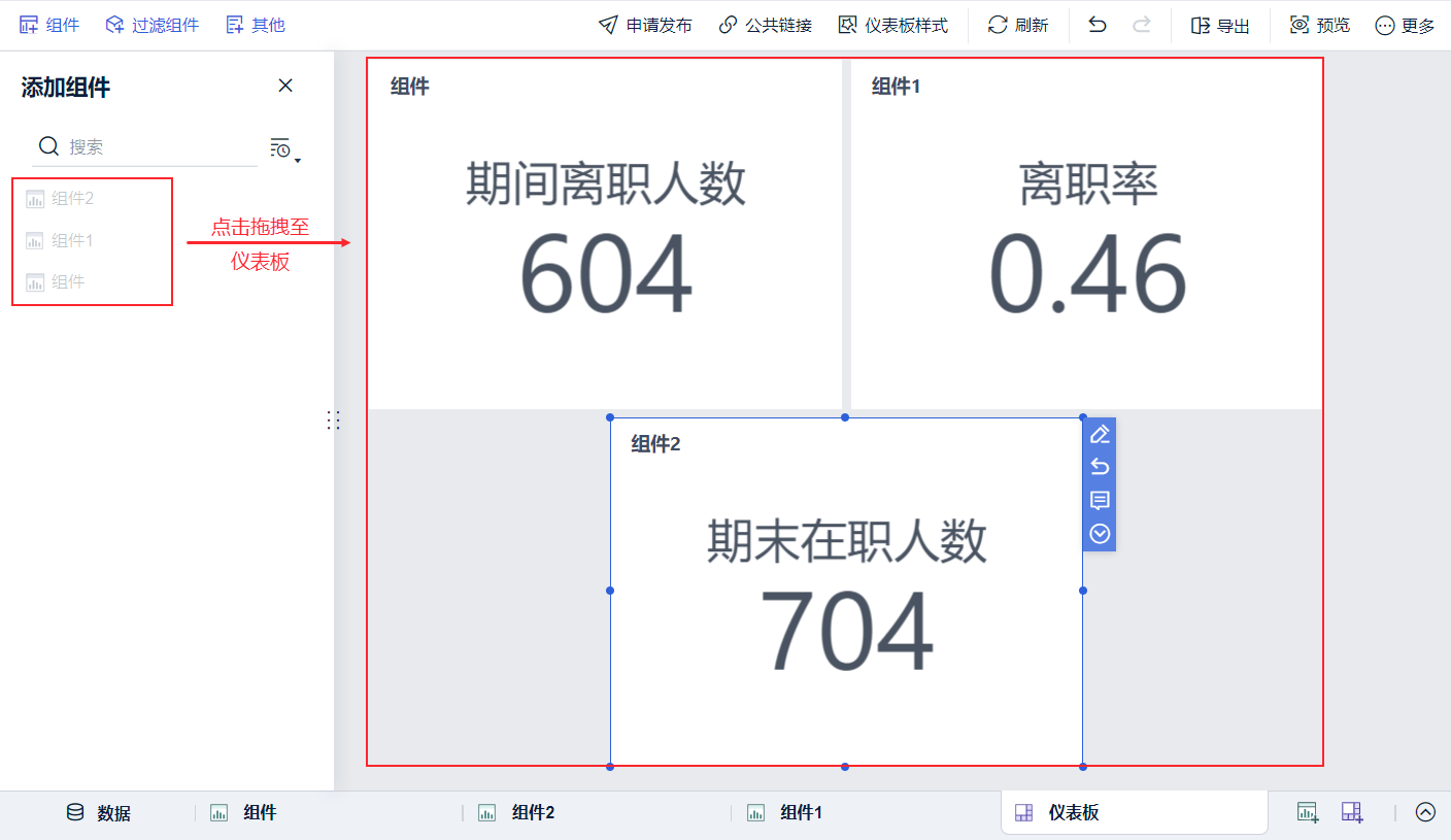 2)将刚刚制作好的组件拖拽至仪表板,如下图所示:
