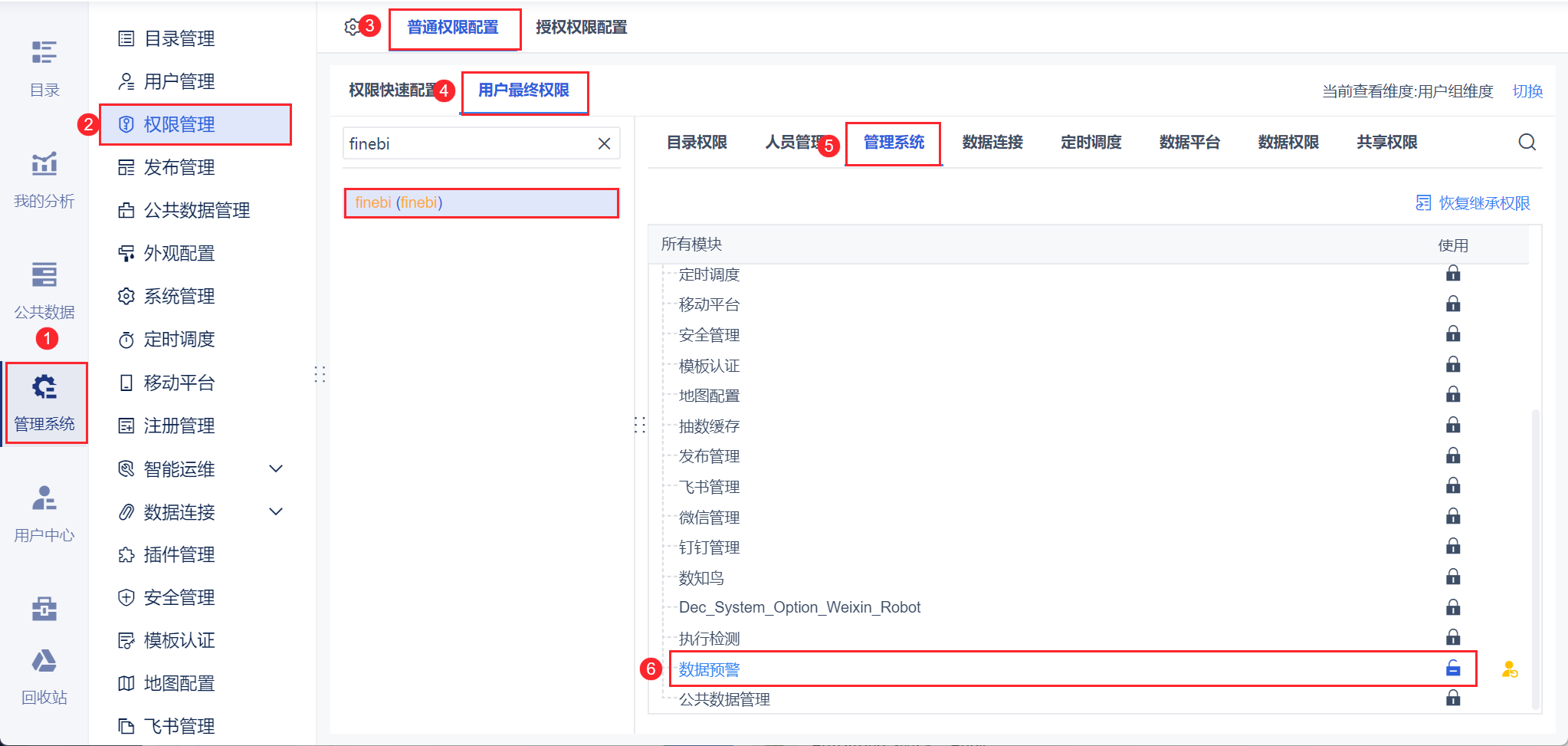 超管通过权限控制插件的使用权限,避免所有人都能创建预警任务从而避免并发问题。如下图所示: