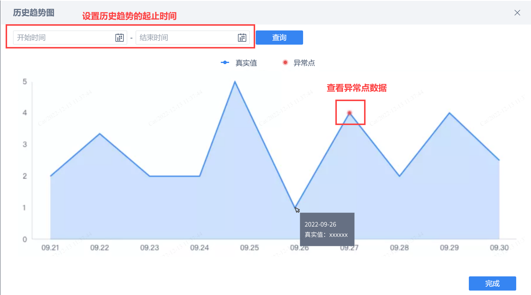 「指标历史汇总分析」功能,可以帮助用户通过历史趋势更好的制定当下的预警值。如下图所示: