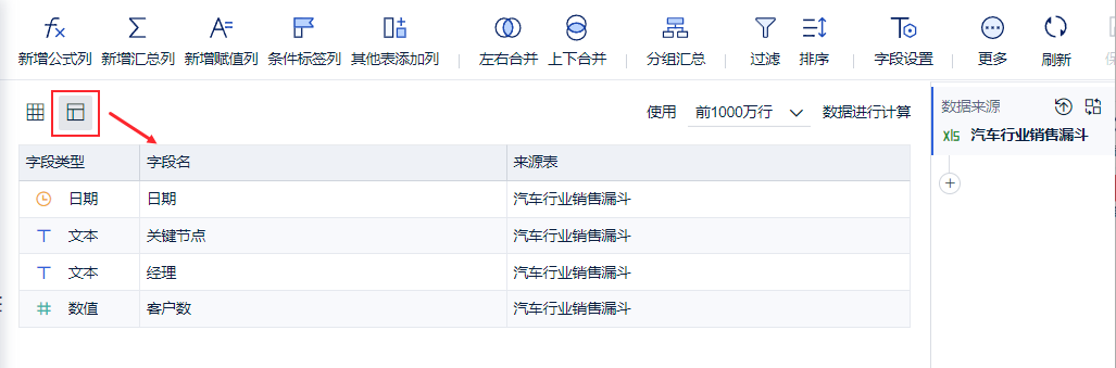 升级兼容:老版本的第一步「选字段」步骤,升级之后会直接添加整张表,用户可使用「字段设置」选择需要的字段。