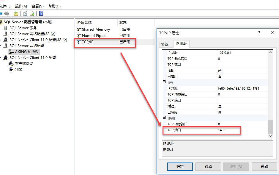 双击「TCP/IP」或右键-属性查看对应的端口号是否正确。