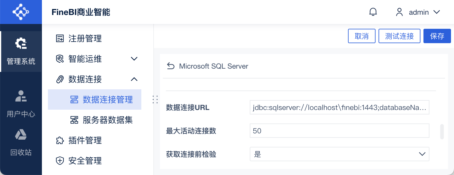 4)修改数据连接的信息。数据连接的「数据连接URL」后加上ssl参数。