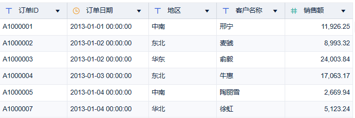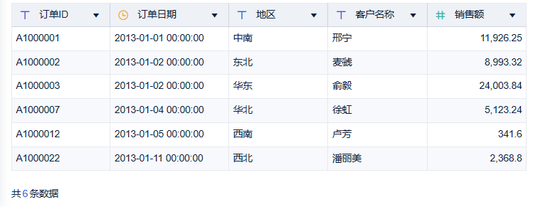 | 只选择「地区」 | 各个地区只保留一条订单数据: