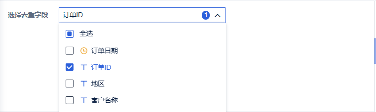 | 只选择「客户名称」 | 每个用户只保留一条订单数据: