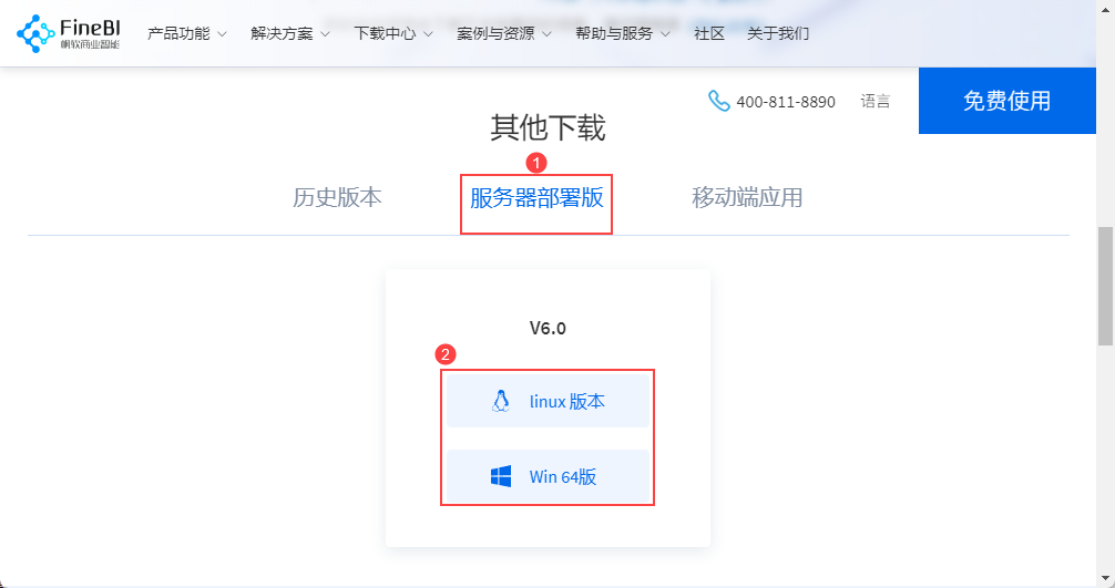 3)在「其他下载>服务器部署版」下,根据自身系统,选择下载对应版本的服务器部署包。如下图所示:
