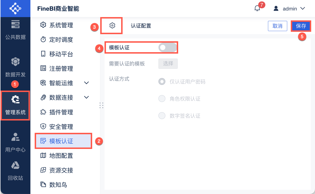 若不需要开启模板认证,则直接进入管理系统>模板认证,关闭模板认证并点击保存,如下图所示: