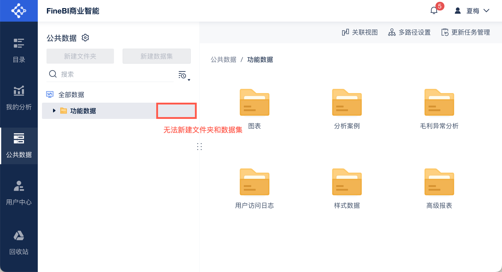此时用户即可拥有新建文件夹和数据集的权限,如下图所示:
