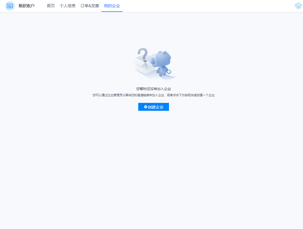 访问 账号中心-我的企业 ,点击「创建企业」。如下图所示: