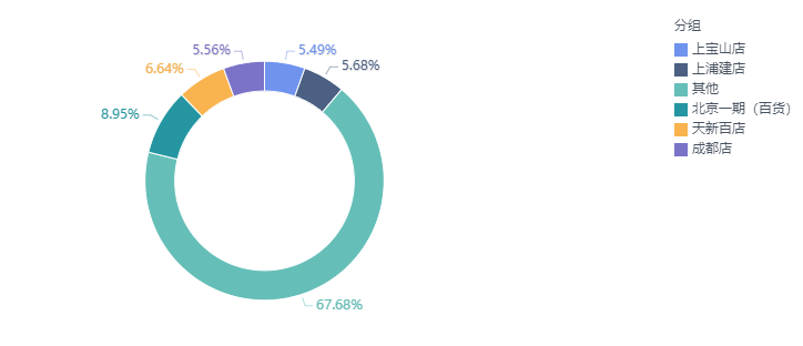 制作完成的组件展示了前五名店铺的销售额和其他店铺销售额的占比,如下图所示: