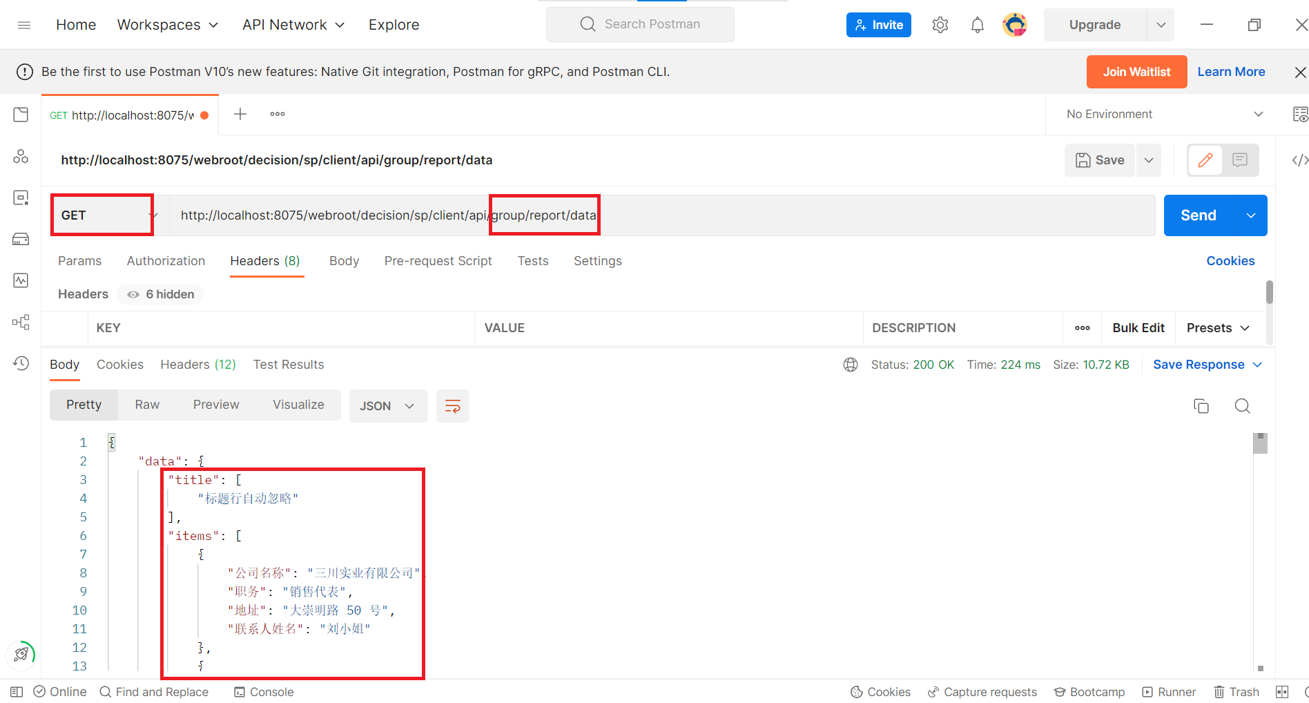 链接为:http://localhost:8075/webroot/decision/sp/client/api/group/report/data。