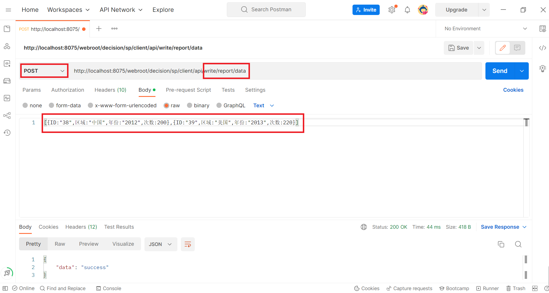 链接为:http://localhost:8075/webroot/decision/sp/client/api/write/report/data。