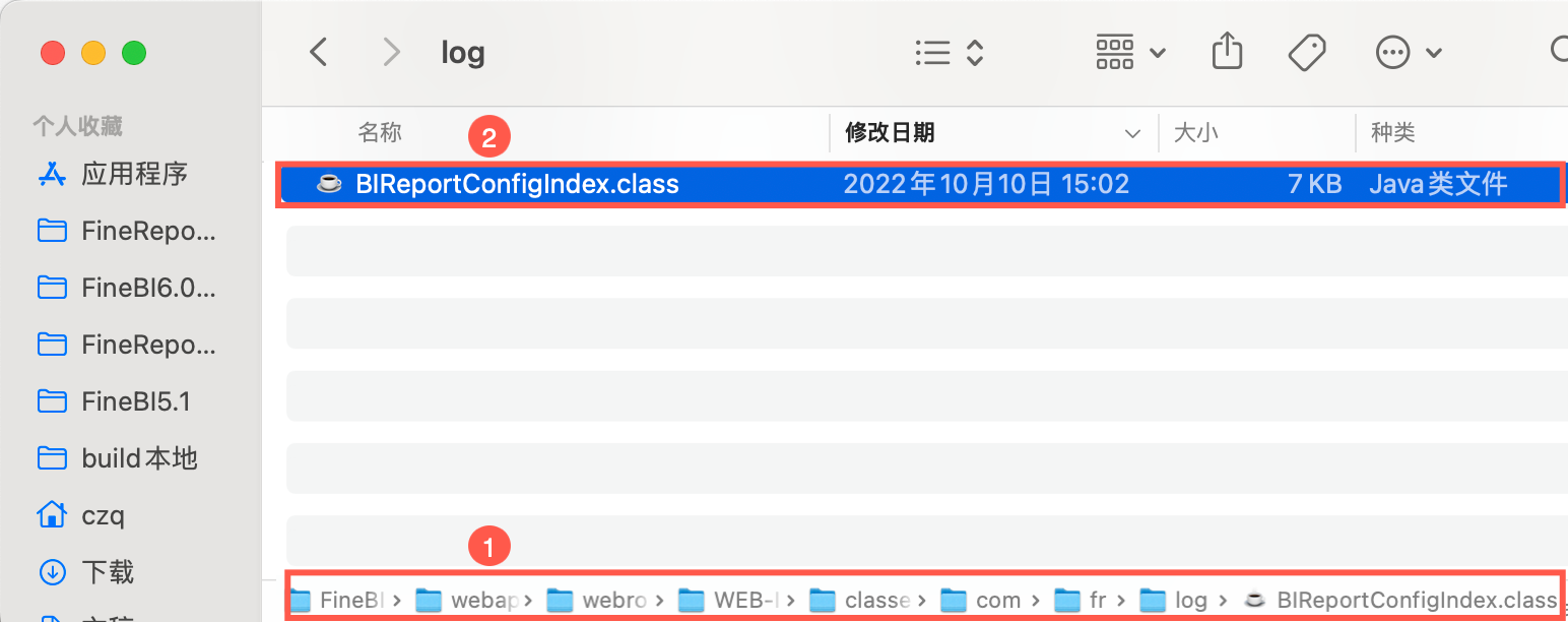 2)根据 1.3 节选取所需的 class 文件,并将其保存至工程%BI_HOME%/webroot/WEB-INF/classes/com/fr/log文件夹下。