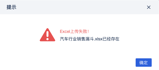 3)文件来源选择「本地文件」,选择本地电脑准备好的 Excel 文件。上传成功后跳出提示框:Excel 上传成功!