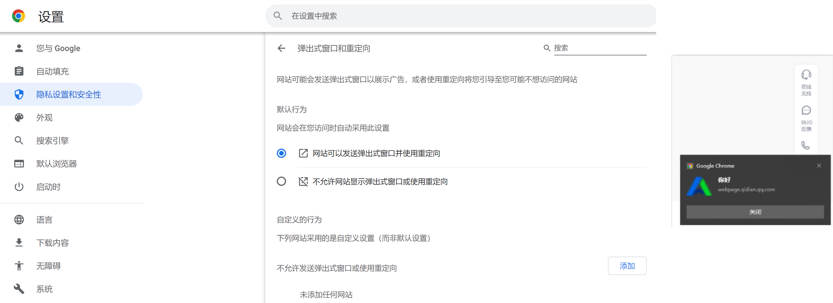 2)如果使用Chrome浏览器依然无法收到消息提醒,请排查浏览器是否开启了消息通知,如下图