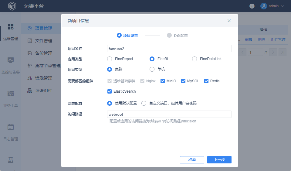 | 全新部署 | 由0到1容器化部署一个全新的报表工程 分别提供单机和集群工程的部署操作 | 部署新项目-FineBI |