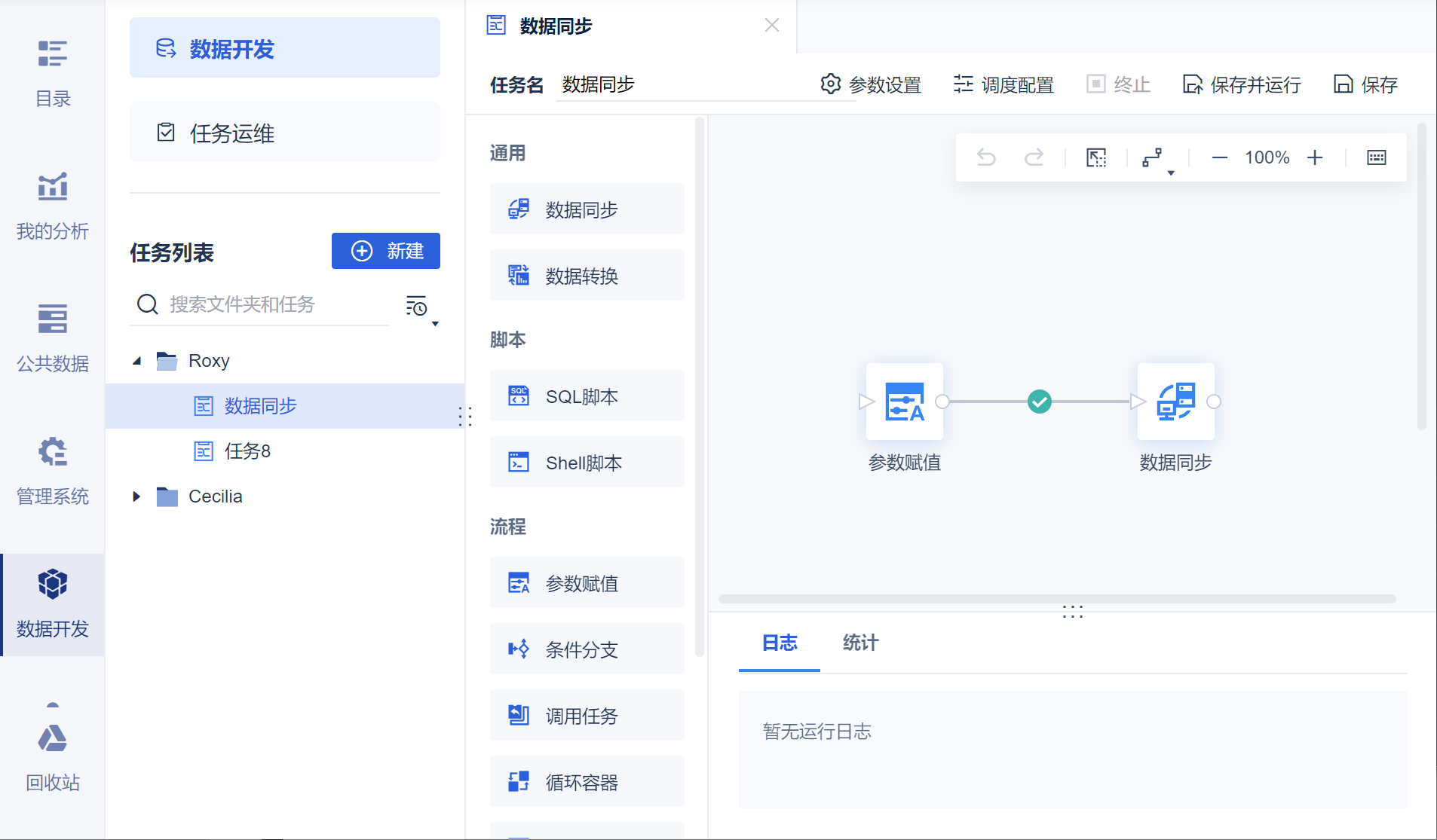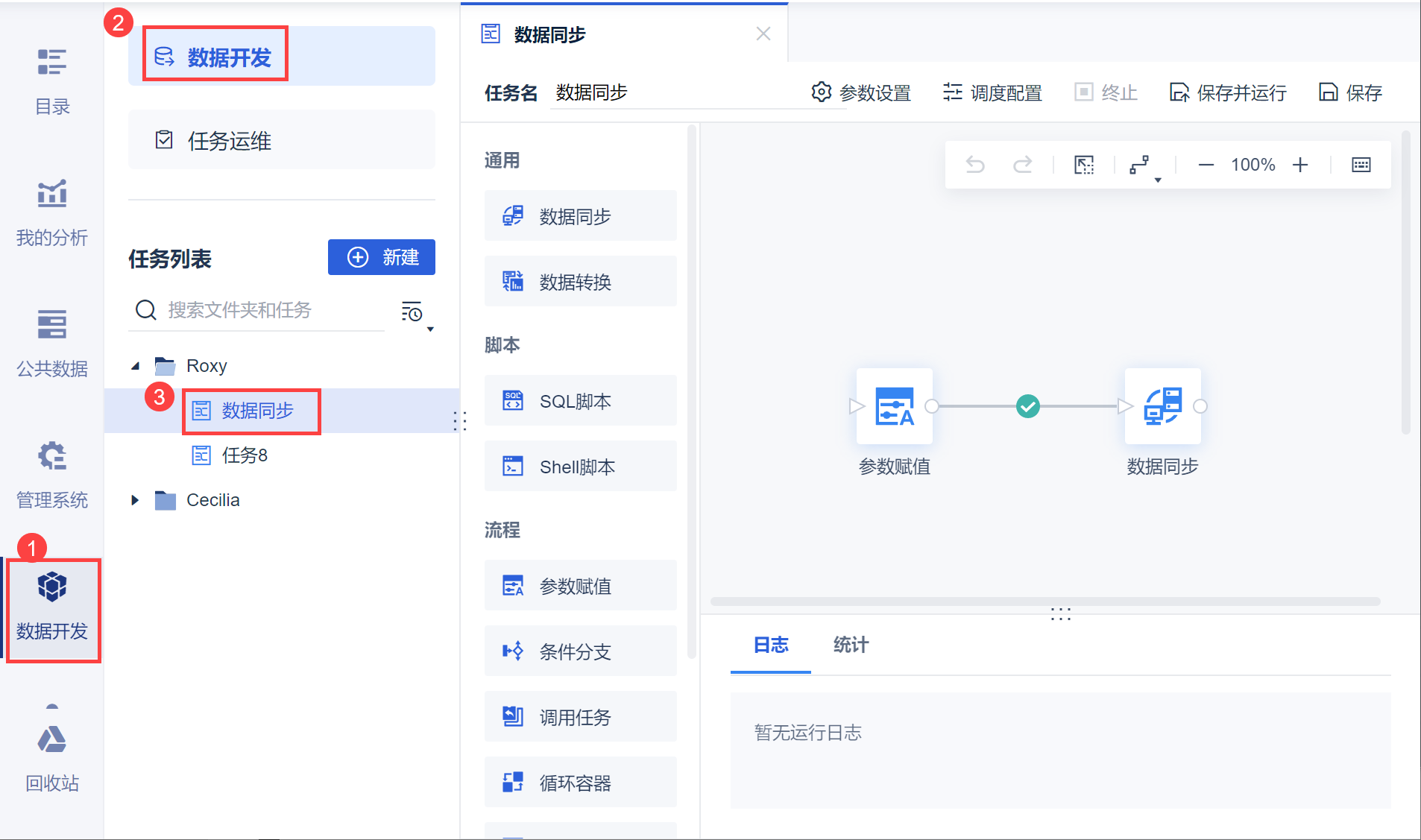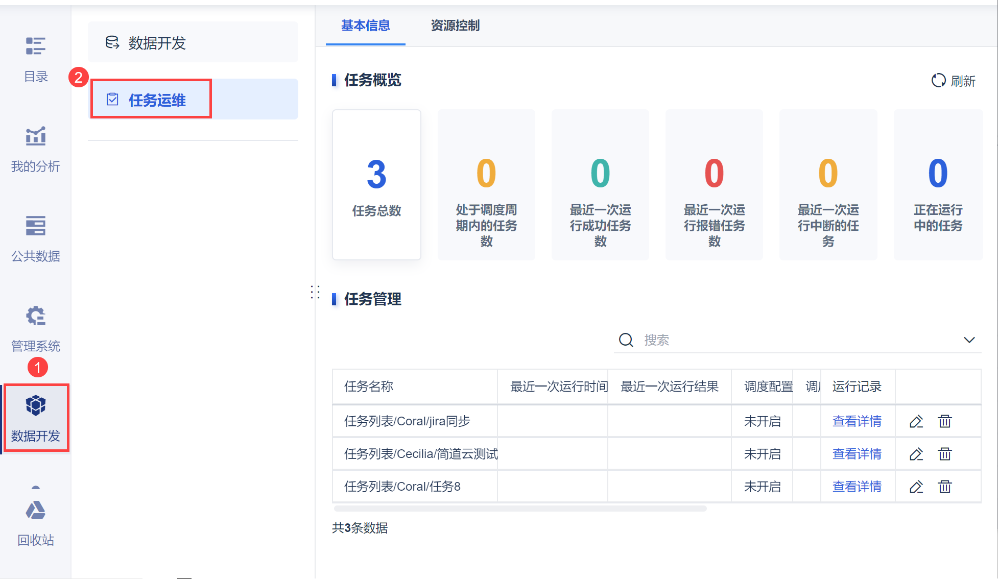点击「数据开发」模块,在任务列表中选择指定的任务,如下图所示: