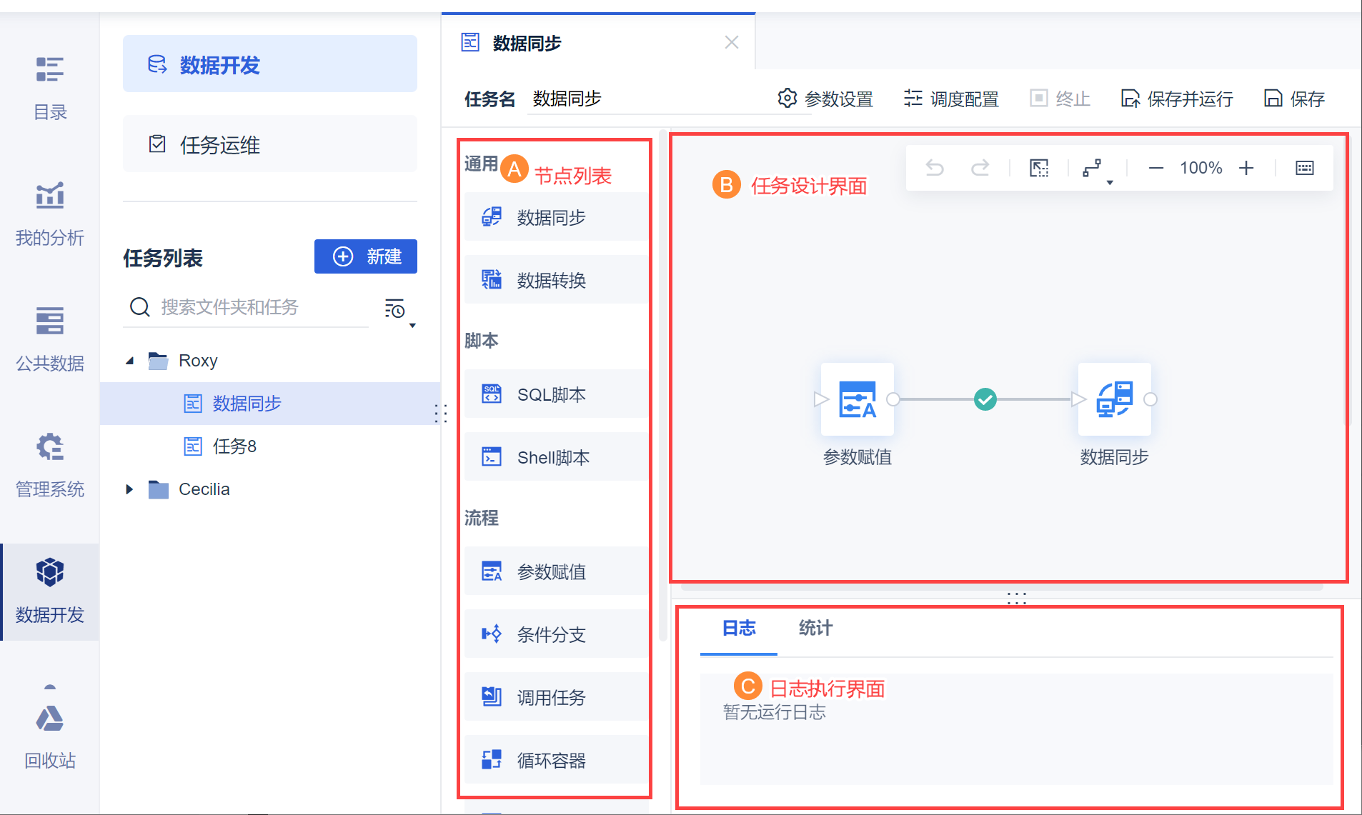 提供离线同步、 SQL 脚本、数据转换等数据处理功能。
