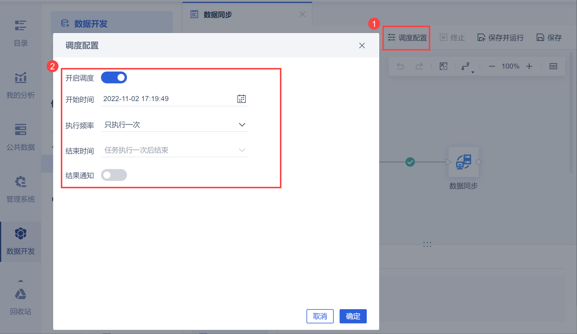 为了满足数据的实时性需求,可以通过设置 定时任务调度配置进行任务的定时执行,如下图所示: