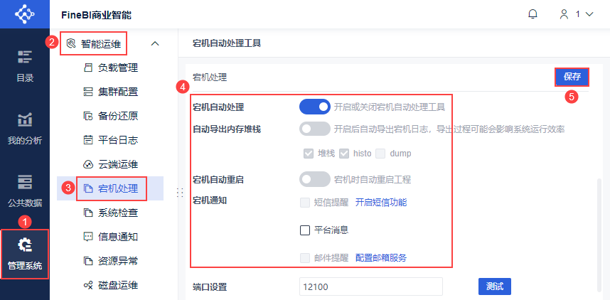 4)针对系统出现宕机的场景,帆软提供宕机通知功能,检测到系统宕机时将提醒运维人员。