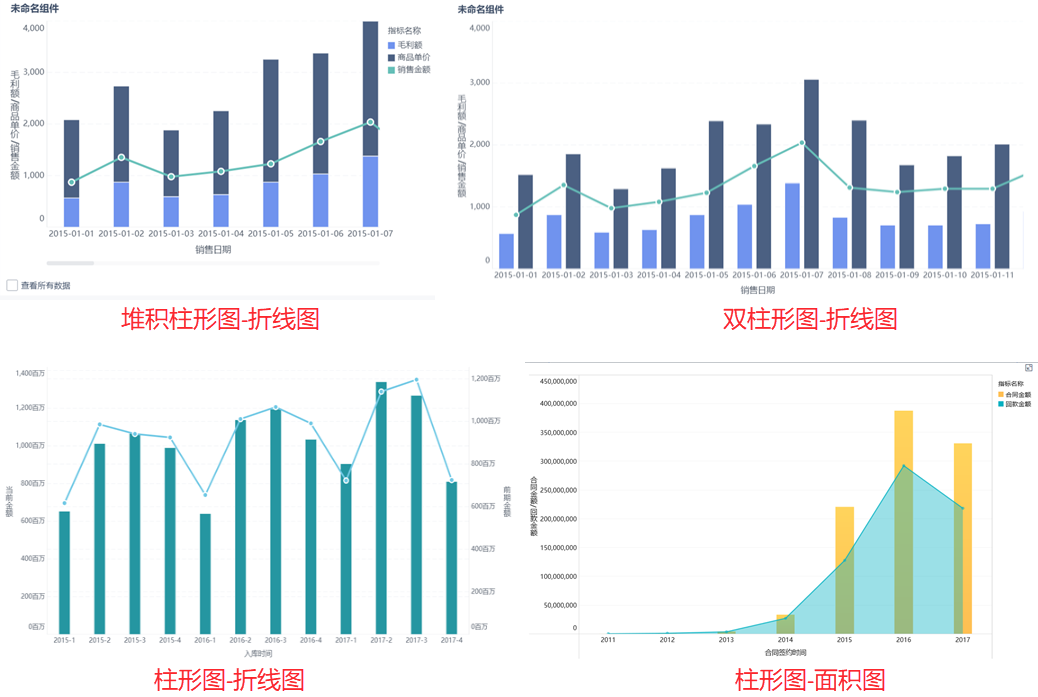 自定义图表可以让用户制作多种多样的组合图,满足用户更自由的探索需求。例如可以实现柱形图与面积图组合,如下图所示:
