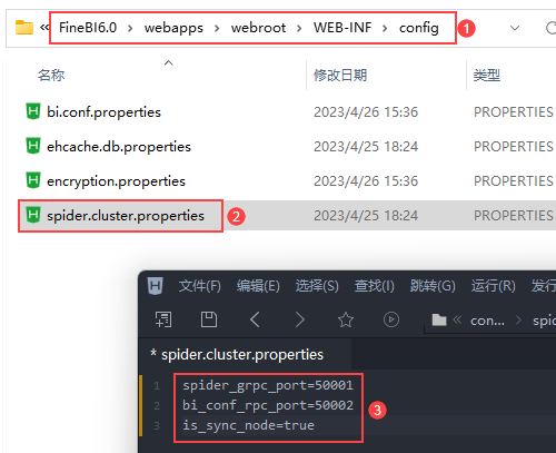 %BI_HOME%\webapps\webroot\WEB-INF\config目录下,新建spider.cluster.properties文件。