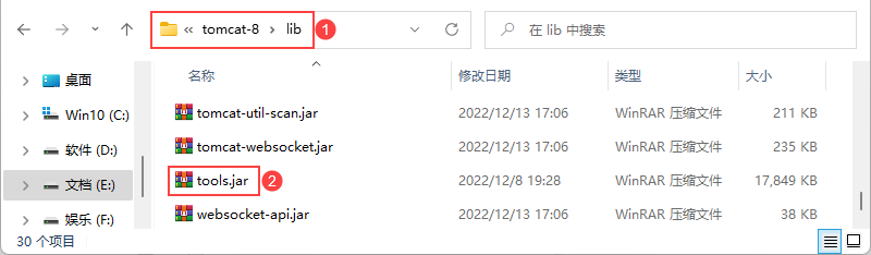 1)进入2.2节JDK%JAVA_HOME%\jdk\lib目录,找到tools.jar文件