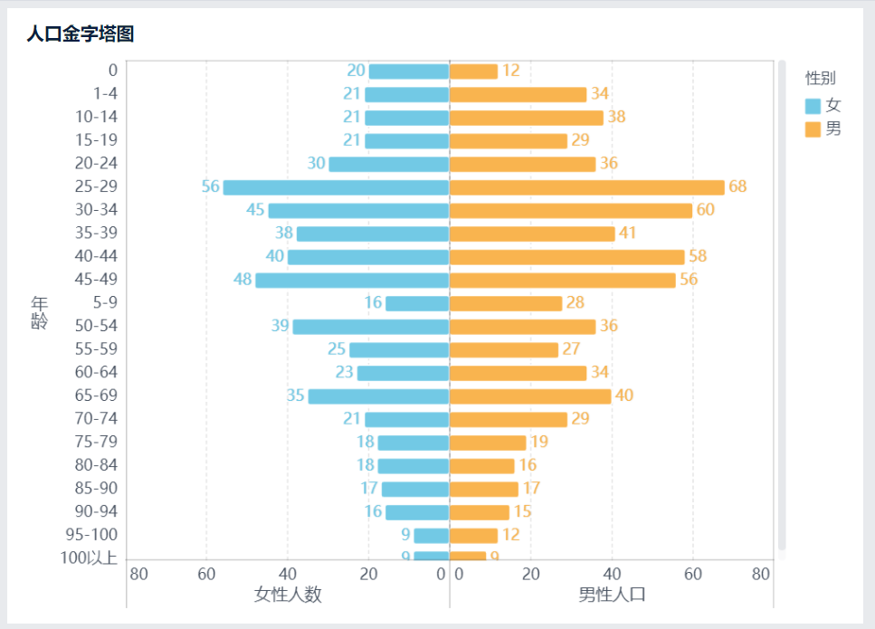 本文介绍如何使用 FineBI 制作人口金字塔,具体效果如下图所示: