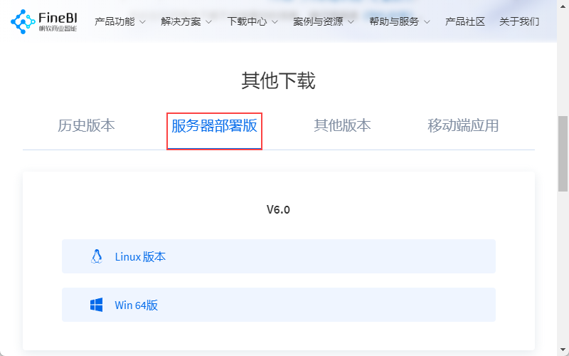 2)在「其他下载>服务器部署版」下,根据自身系统,选择下载对应版本的服务器部署包。如下图所示: