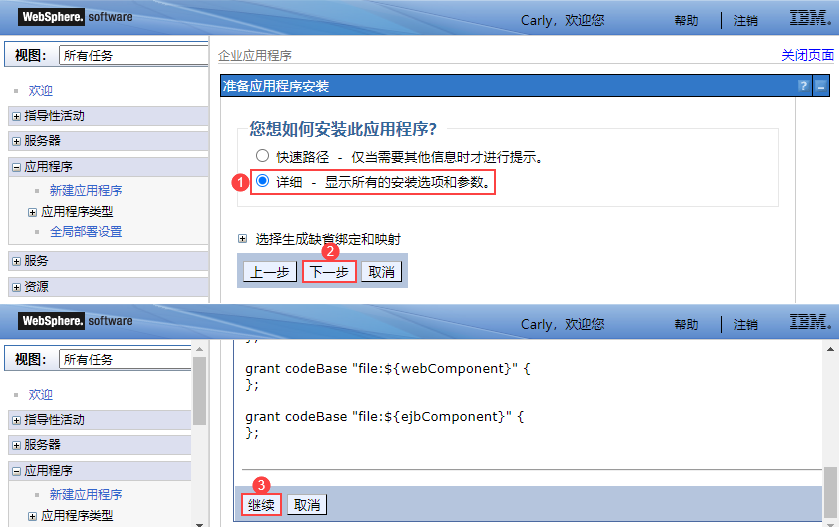 建议在部署工程前,对参数进行配置,详情请参见:WebSphere服务器配置修改