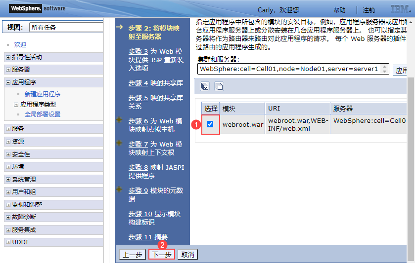 步骤2:将模块映射至服务器:勾选「复选框」,进入「下一步」。