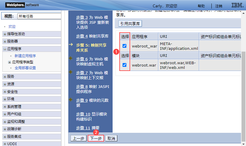 步骤5:映射共享库关系:勾选全部「复选框」,进入「下一步」。
