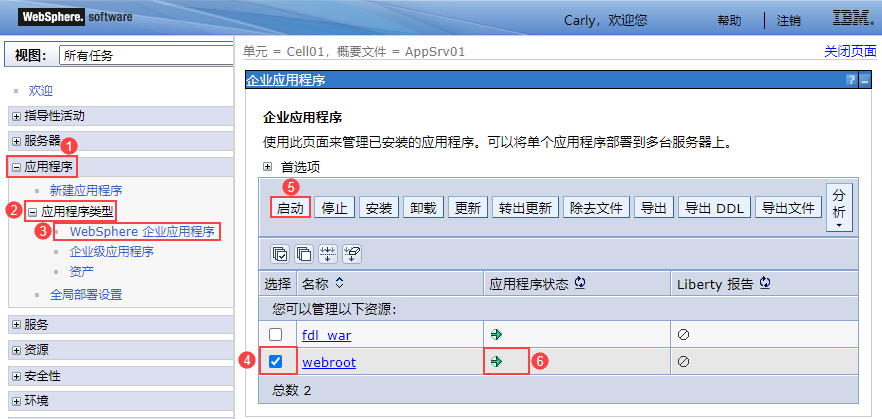 /opt/IBM/WebSphere/AppServer/profiles/AppSrv01/installedApps/localhostNode01Cell/webroot.ear3)进入 webroot.ear 目录,将 webroot 文件夹重命名为 webroot.war,参考如下命令: