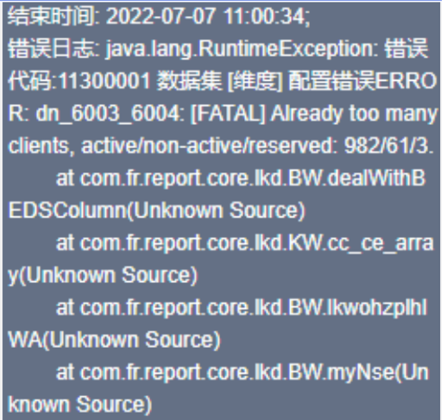 com.fr.restriction.MemoryAlarmException:很抱歉,sql 执行时间过长触发保护机制,请稍后重试。若您是管理员,可于智能运维-内存管理-模板限制中更改此项限制。