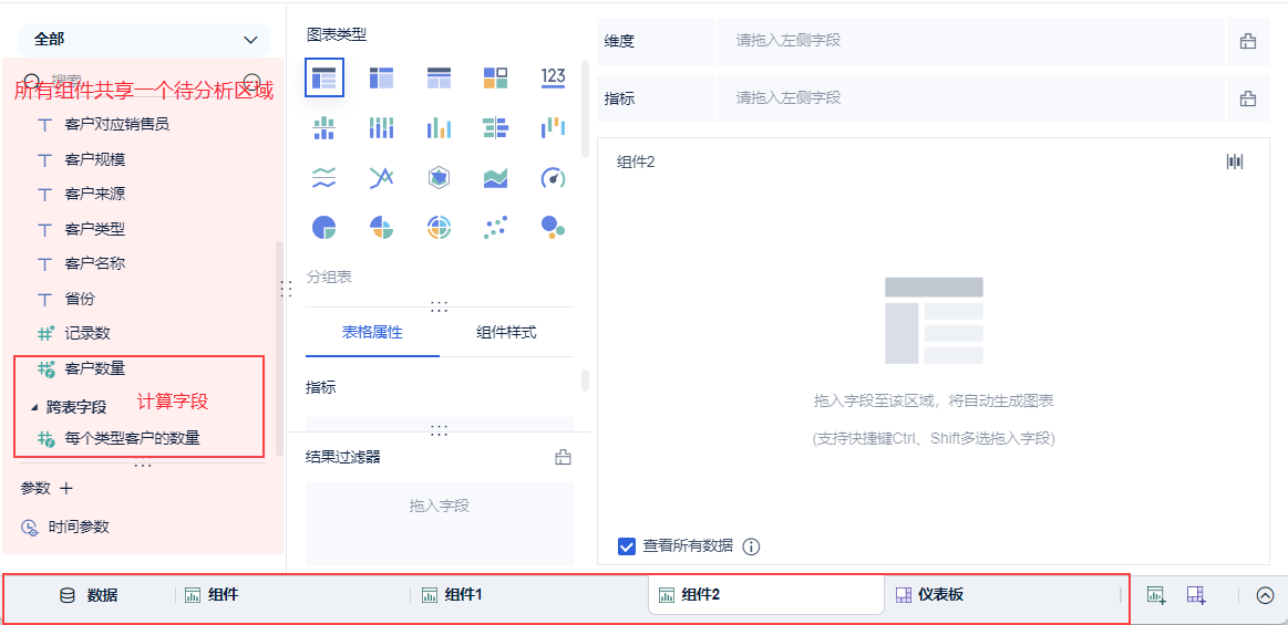 FineBI 5.0 中的组件无法复用其他组件的计算字段,每个组件都需单独创建;
