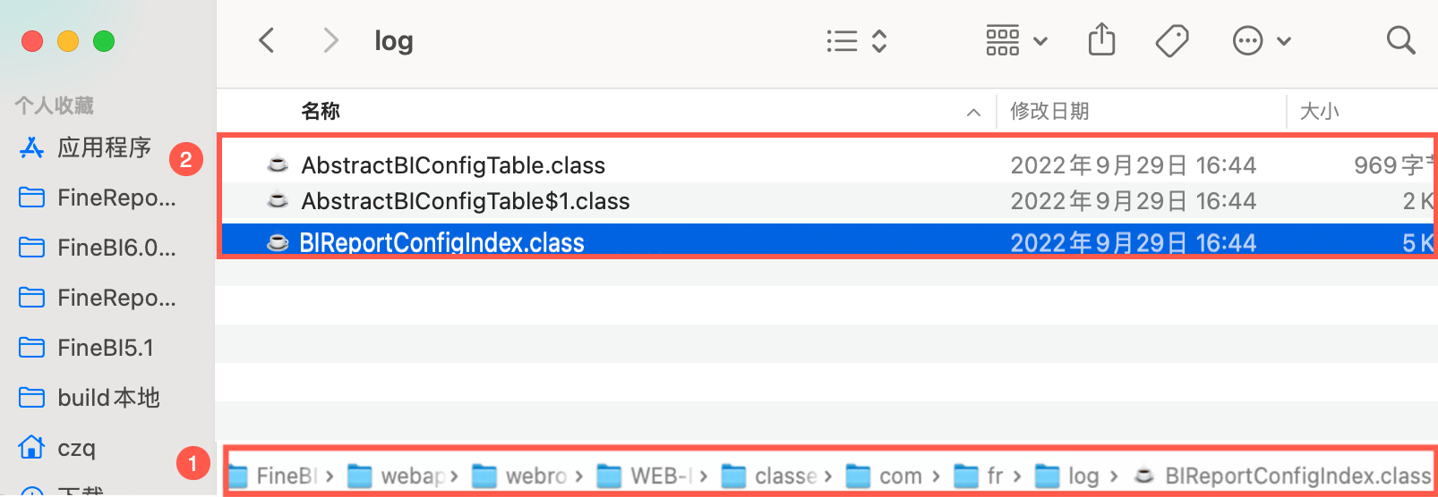 2)选取所需的 class 文件,并将其保存至工程%BI_HOME%/webroot/WEB-INF/classes/com/fr/log文件夹下。