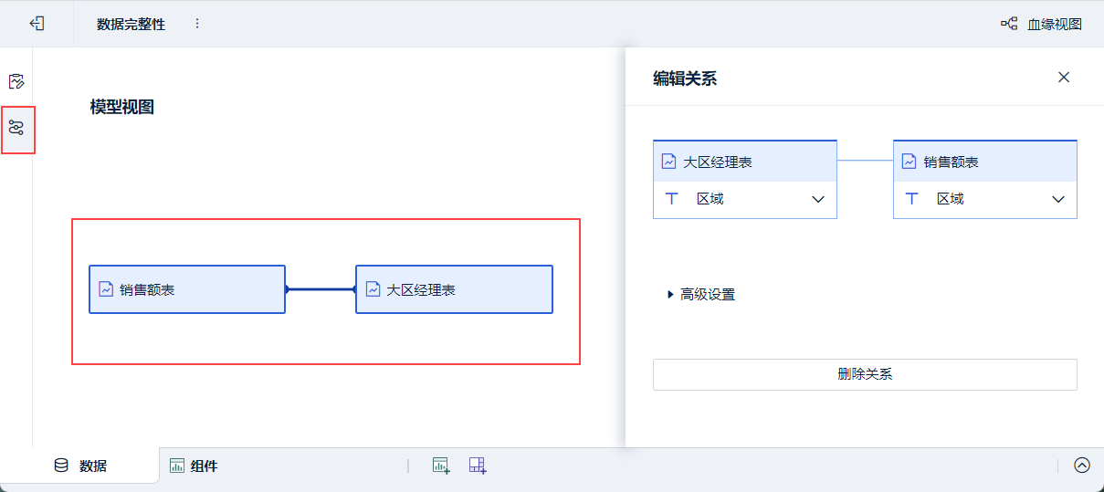 2)在组件中使用了「销售额表」和「大区经理表」的指标字段,所以组件中这两张表的字段都保留完整。