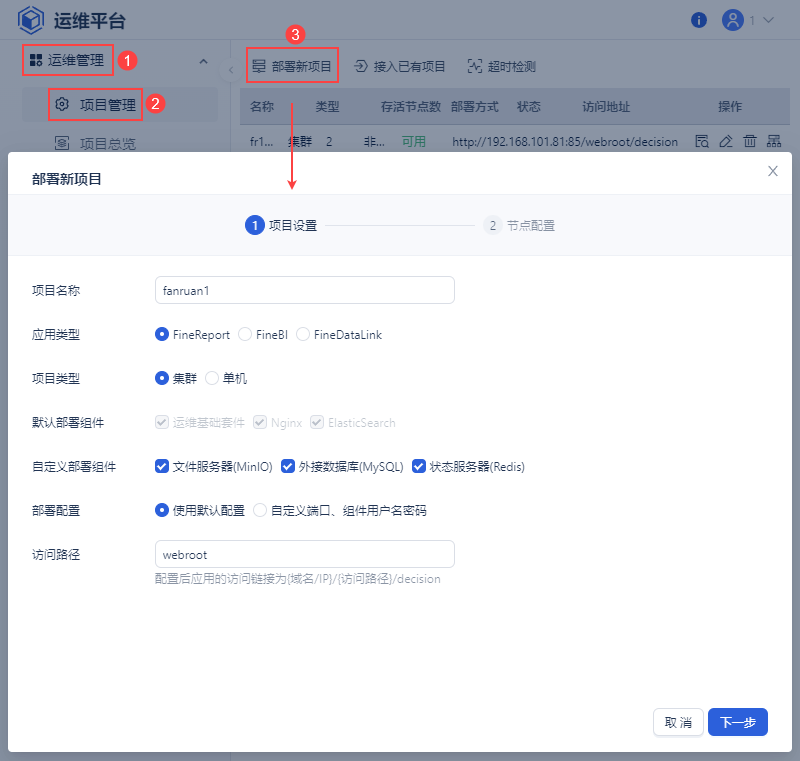 为了降低部署带来的较高成本,帆软提供FineOps运维平台,支持前端容器化部署单机/集群FineBI工程。