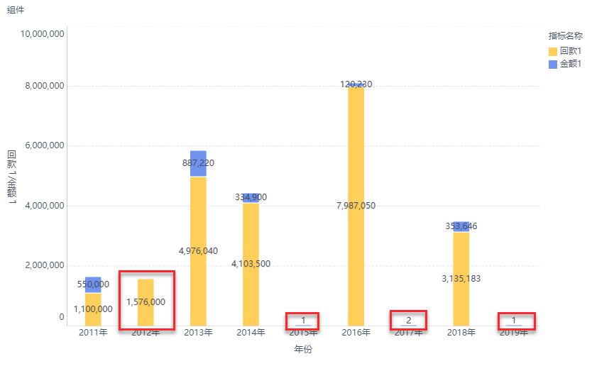 再使用「回款1」和「金额1」做堆积,实现效果如下图所示: