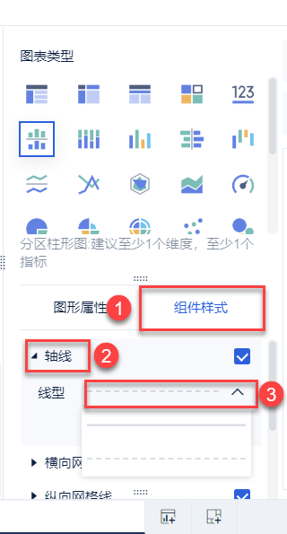选择组件样式,点击轴线选择轴线线型为虚线,如下图所示: