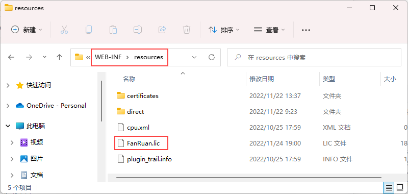 注:FanRuan.lic会自动保存到您当前工程%FR-HOME%\webroot\WEB-INF\resources 目录下。