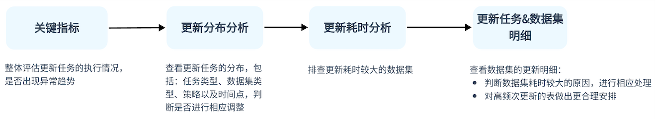 数据集的更新对业务使用和业务效率有较大影响。用户希望获取以下信息,便于更好的管理更新任务。