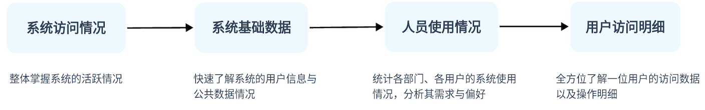 用户希望获取到 BI 系统的使用数据,分析平台用户的需求与偏好,并根据分析结果进行相应的系统优化和更新,从而提升系统的使用效率。