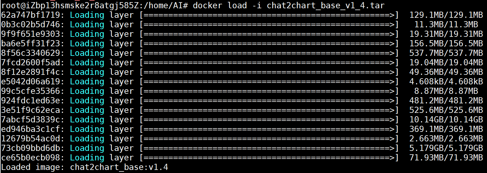 示例代码:docker load -i chat2chart_base_v1_4.tar