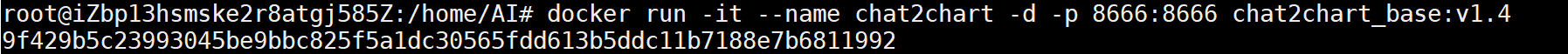 5)使用命令运行镜像,命令为:docker run -it --name chat2chart -d -p 8666:8666 基础镜像名称:基础镜像版本号