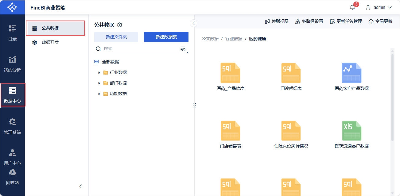 公共数据是企业/团队的公共数据资源所在处,用来存放高质量、高频次使用的数据表,便于业务人员分析时直接取用。
