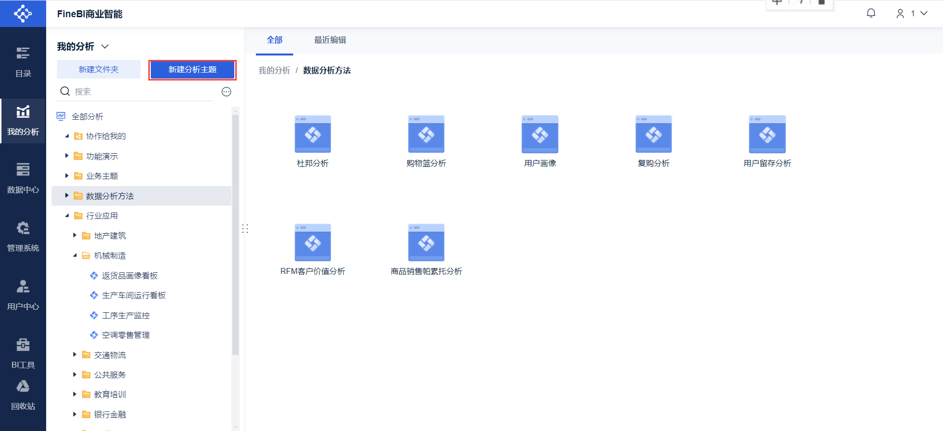 点击「我的分析」即进入分析主题的管理界面,如下图所示: