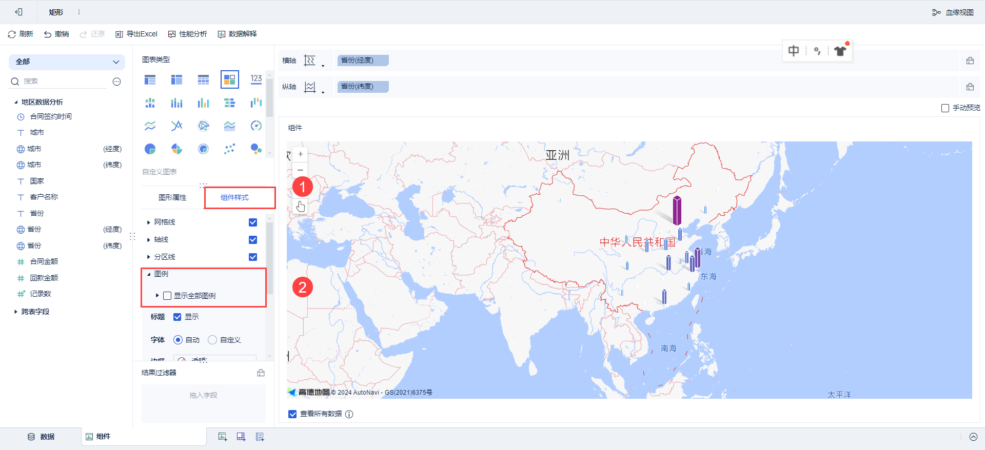 图例的显示没有必要,为了让图表更加美观,去掉图例。在「组件样式」下取消勾选「图例」,如下图所示: