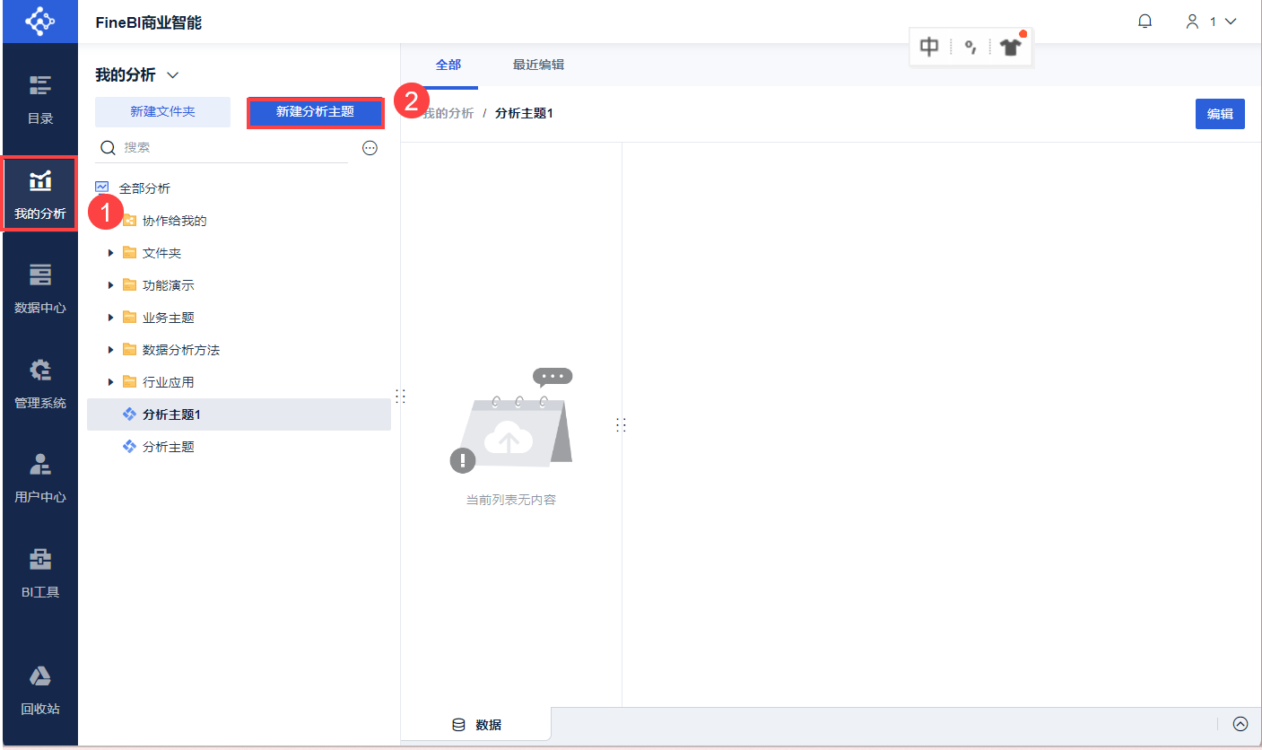 将主题命名为「交互分析主题」,并将本地数据添加到主题中,如下图所示: